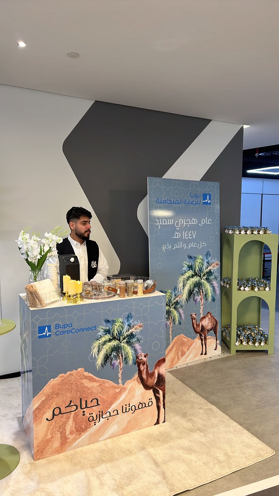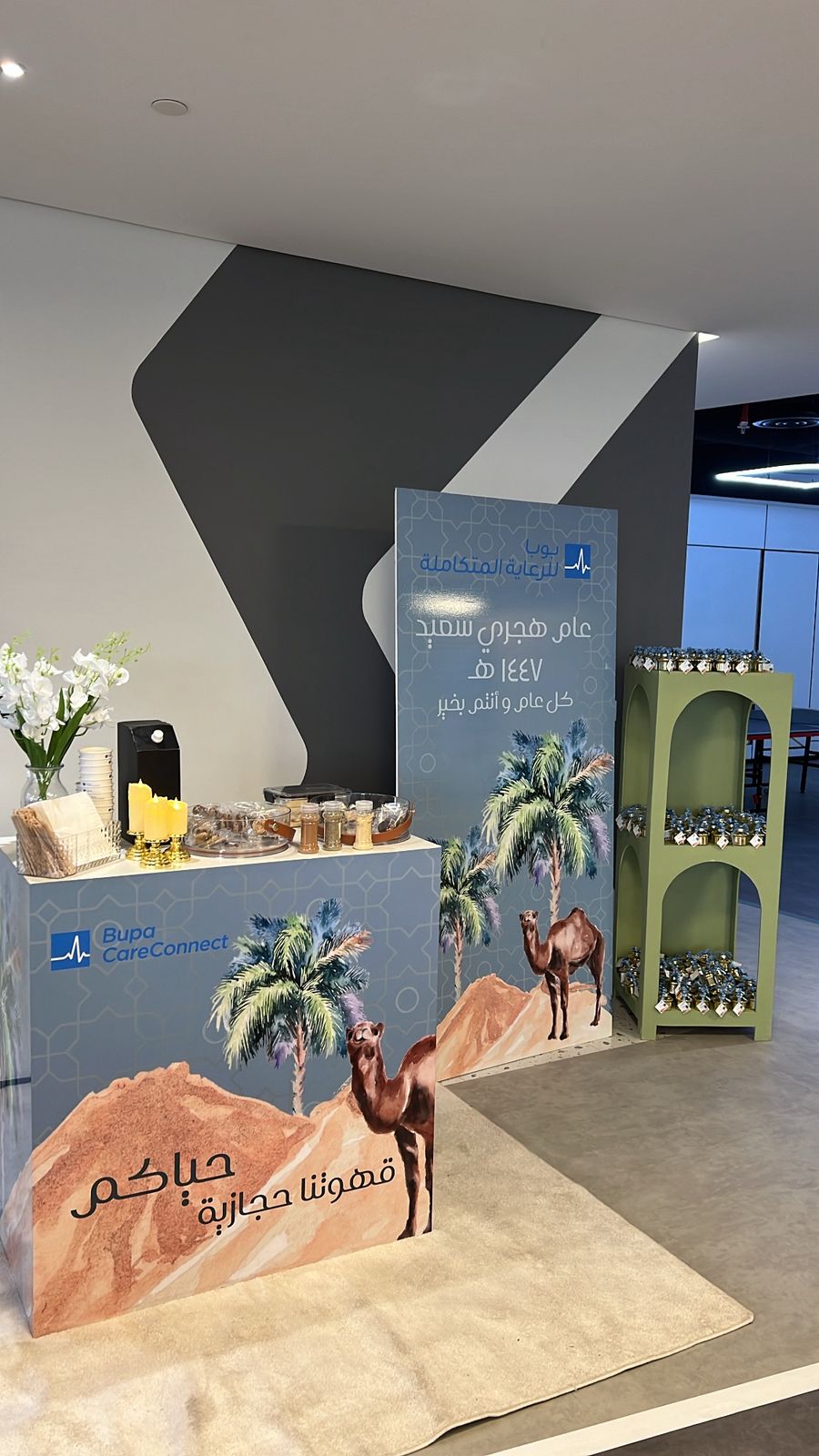 To welcome the Hijri New Year 1447, 3S collaborated with Bupa Arabia to create a warm and authentic hospitality experience for their employees and visitors. The celebration was built around the charming theme of traditional Hijazi coffee, offering a genuine taste of Saudi culture to mark the new year.